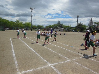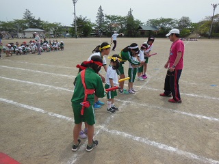 1年生の選手も6年生にバトンの持ち方を教えてもらって、元気に走りました。