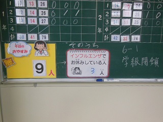 特に6年1組でインフルエンザによる出席停止とインフルエンザ様症状の欠席児童が急増しました。