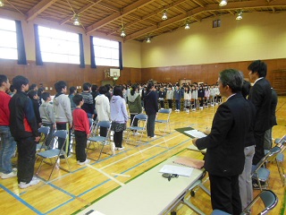 3月22日(水)の4校時目に平成28年度修了証書授与式を行いました。