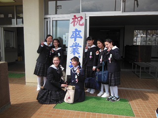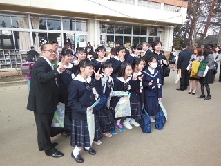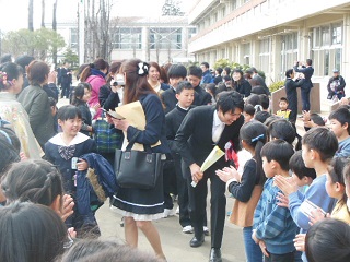 卒業式が終わると、校舎前で中学校に巣立っていく卒業生をみんなで見送りました。