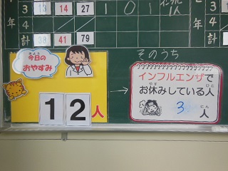 インフルエンザによる出席停止の人数は昨日と同じです。