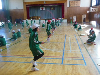 1年生から6年生までそれぞれの学年に応じて、2月のなわとび記録会に向けて、一生懸命練習していました。