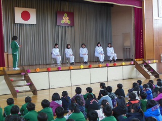 いつも給食を作ってくださっている調理員の方々をご招待して、全校生で感謝の気持ちを表しました。