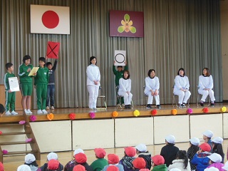 児童代表の感謝の言葉、児童会の給食委員会による「調理員さんに関するまるばつクイズ」、調理員さんへの質問コーナーなどがありました。