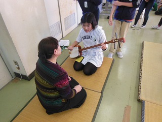 次に、「和楽器にふれよう」で和楽器を体験しました。