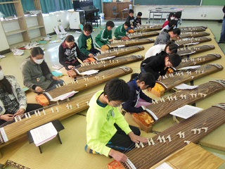 箏は爪を付けて弾く練習をし、「さくら さくら」を合奏できるようになりました。
