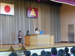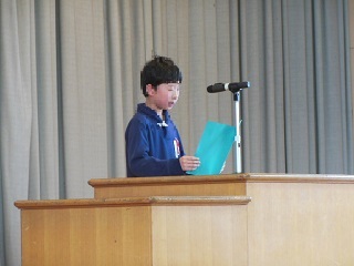 始業式では、代表児童3名がそれぞれの3学期の抱負を発表しました。