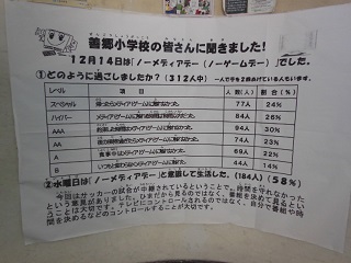 12月14日(水)の調査では、「水曜日はノーメディアデー」と意識して生活した児童の割合は、58%でした。