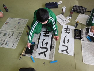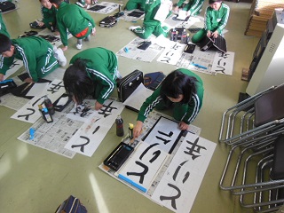 1月12日(木)は、3年1組と2組が合同で「校内書き初め会」を行いました。