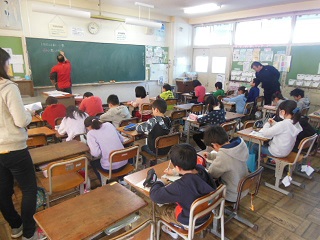 作品はあとで廊下に飾りますので、授業参観の時などにご覧ください。