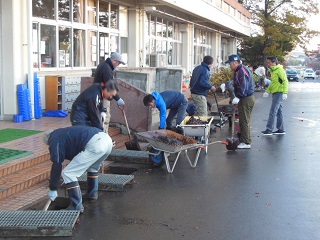 各教室へのストーブの搬入、トイレ掃除、落ち葉掃き、側溝の泥あげ、校庭の草むしりなどでたいへんお世話になりました。