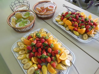 デザートはイチゴ、バナナ、オレンジのほかに、ゼリーもありました。