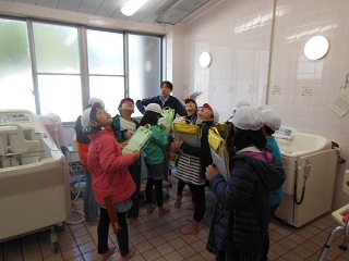車いすごと乗車できる自動車やお年寄りの方々が利用するお風呂の様子などを見学しました。
