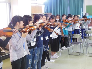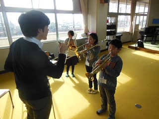 新入部員の3年生10名もプロの音楽家の指導を受けながら最初の楽器演奏となりました。