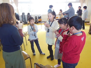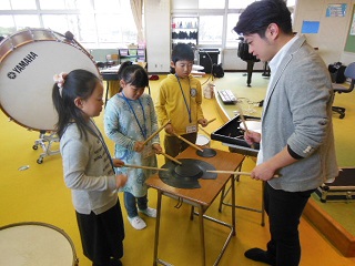 その後、グループに分かれて、実際にいろいろな楽器の演奏を体験しました。