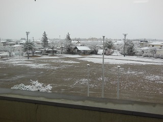 2016年11月24日 11時49分11月24日(木)まだ11月だというのに、天気は朝から雪で、学校は一面の雪景色になりました。