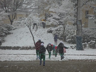 休み時間になると、子どもたちは校庭で雪合戦を楽しんでいました。