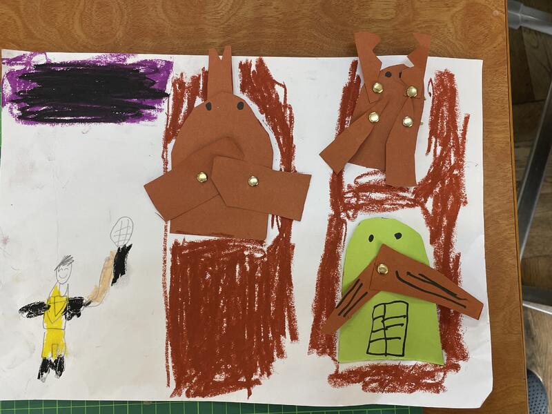 割ピンで動くしくみを使った作品作りにチャレンジです。