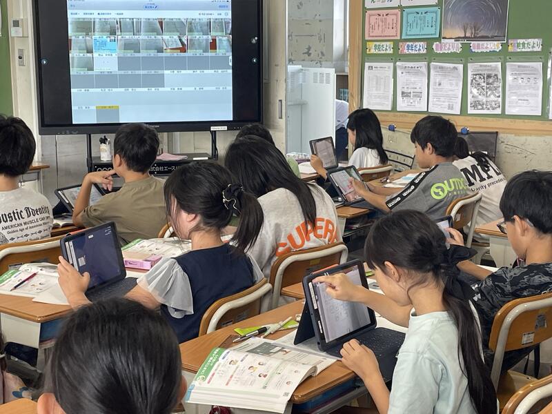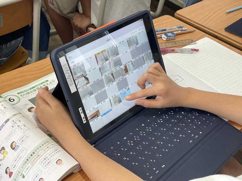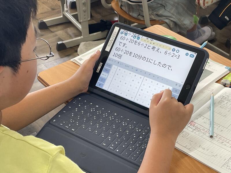 自分が考えた計算のしかたをタブレットに入力して送信し、みんなで共有していきます。