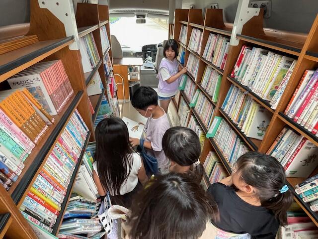 今日の昼休みは移動図書館がやってくる日です。心待ちにしている子も多く、目を輝かせながらお気に入りの本を探していました。
