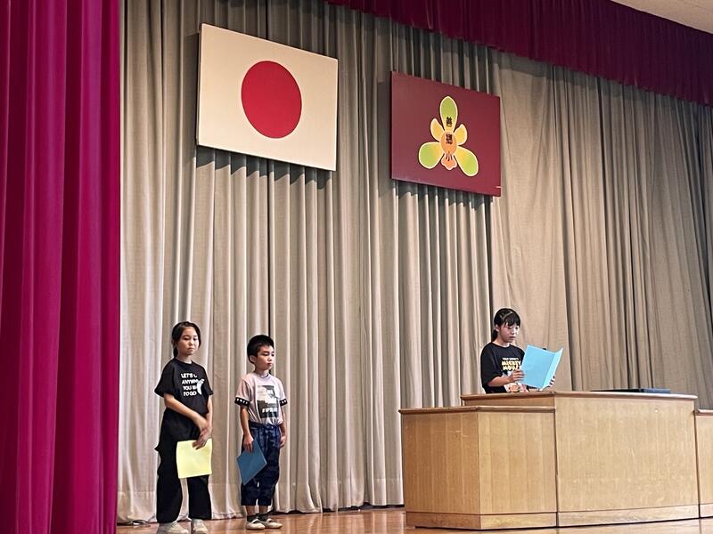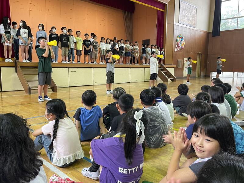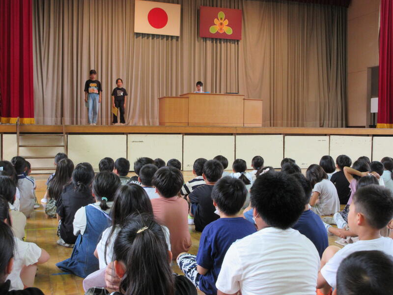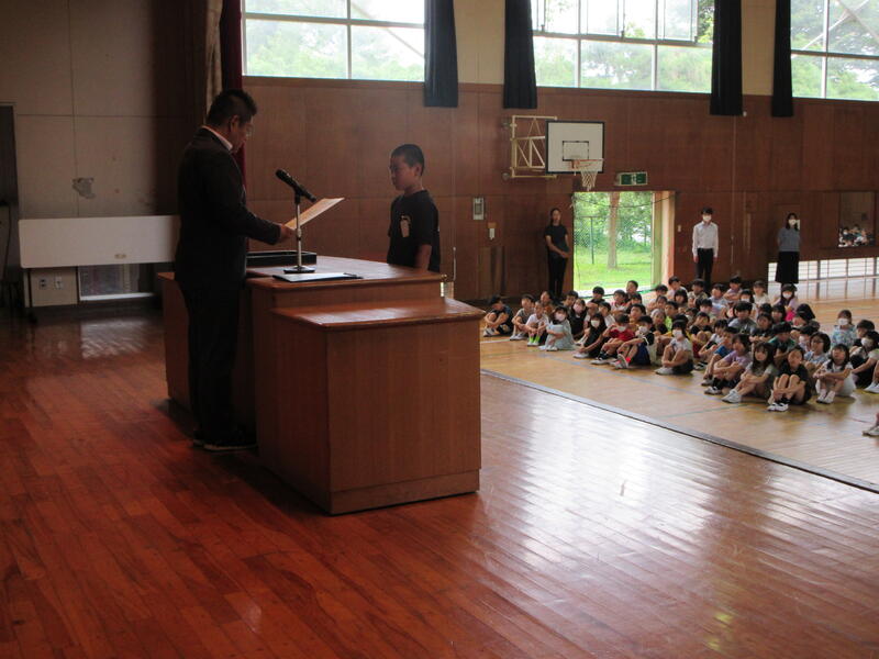 無事に1学期を終えることができました。71日間の1学期の締めくくりとして、終業式を行いました。3人の代表児童が1学期の頑張りや2学期に向けた抱負などを発表しました。また、生徒指導担当から、夏休みの安全な過ごし方や地域の一員として自覚を持った行動をとること等について指導がありました。事件・事故に巻き込まれず、安全で健康な夏休みを過ごしてほしいと願うばかりです。保護者・地域の皆様の御理解と御協力に感謝申し上げます。