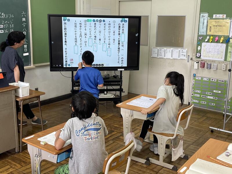 教育長をはじめ、町の教育委員会の皆様が来校しました。全ての学級を訪問して子ども達それぞれの成長の様子を見ていただきました。