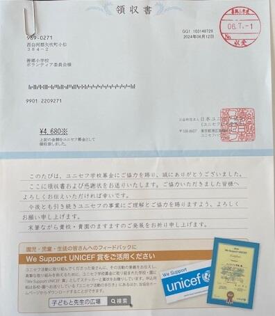 ボランティア委員会が中心となり、多くの児童が参加した募金活動。みんなの善意が浄財としてユニセフに届きました。