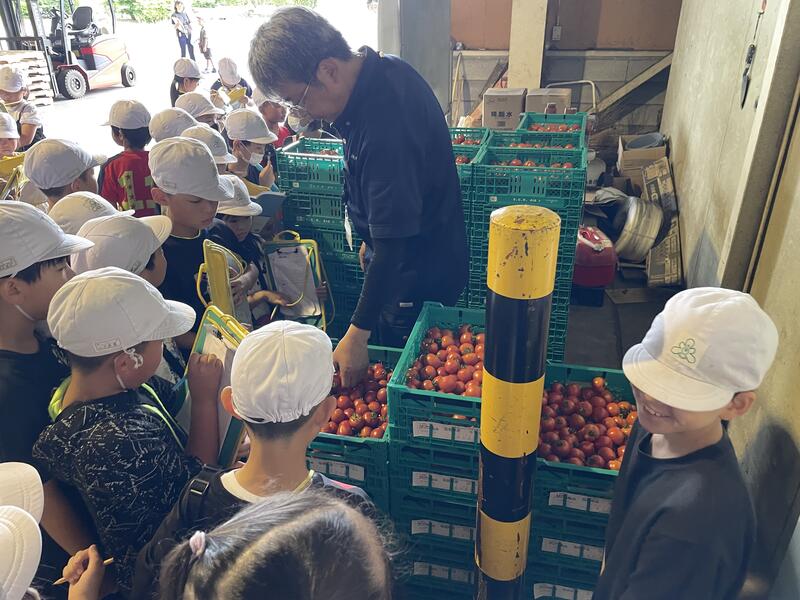 農家の仕事について学習している3年生が、トマト農家と集荷場を訪ねました。矢吹町はトマト・キュウリ・ブロッコリー等の栽培が盛んです。子ども達は、甘いトマトを栽培する方法やその苦労等を農家の方から熱心に聞き取っていました。農家の仕事を学びながら、地元を再発見していました。