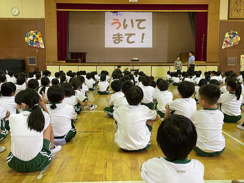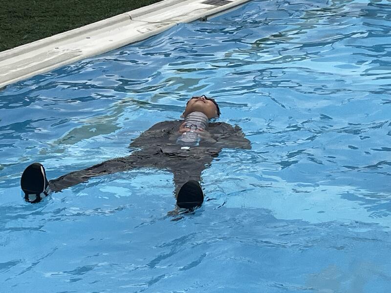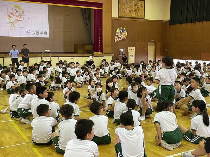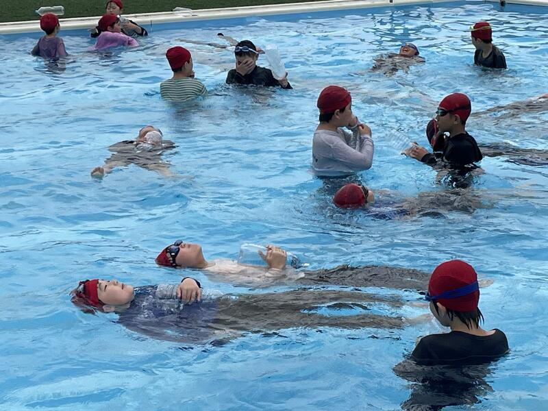 本格的な夏を前に、(一社)水難学会の協力を得て着衣のまま水に落ちた際の対処法について学びました。講師には現役の消防士があたってくれました。体内と衣服にためた空気で十分身体が浮くことを学びました。