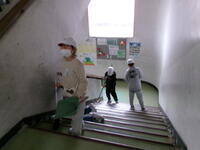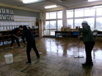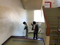 金曜日に各教室の床のワックスがけを行いました。今朝、子ども達が登校してきたときには、机などが廊下に並んでいる状態でした。朝の活動が始まる前の時間には、ほとんどの教室に机や備品が再び運び入れられていました。そんな中、5年生のお友達が、廊下や階段に落ちていたほこりやごみをほうきで掃き、きれいにしてくれていました。