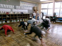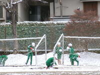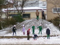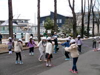 県南地方にも、雪が降りました。校庭の隅にまだ残っていた雪で、雪だるまを作ったり雪合戦をしたりして遊ぶ子ども達。校舎前のアスファルトでは、なわとび運動に取り組む子ども達もいました。寒い中でも、元気に楽しく遊ぶ子ども達です。