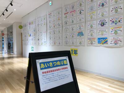 学校運営協議会善郷小学校区部会の取組みで、保護者の皆様にもご協力いただいた「親子あいさつ塗り絵」の作品を KOKOTTOに展示しました。子ども達が一生懸命に色を塗った作品をぜひご覧ください。1月22日(月)まで展示しています。
