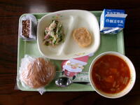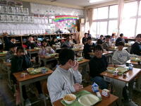 19日(火)の給食は、クリスマス特別献立でした。フライドチキンやミネストローネ、そしてケーキまでついて、クリスマス気分とともにおいしさを味わうことができました。さらに、サンタさんやトナカイさん、雪だるまさんなどの人形が2つづつ、各教室にプレゼントされました。これは、栄養教諭とスクールサポートスタッフが企画準備し手作りしたものです。子ども達は、おいしいクリスマス給食とかわいいプレゼントを喜んでいました。