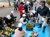 19日(火)の児童会委員会活動の時間に、栽培委員会の皆さんでパンジーの苗植えを行いました。これは、冬の彩りとともに、3月の卒業式の会場を飾る花の一つとして、育てていく準備です。寒い中、冷たい土を触りながら、心を込めて一つ一つ植木鉢に植えていきました。栽培委員会の皆さん、ありがとうございました。これから、大切に育ててくださいね。