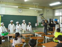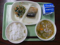 保護者の皆様には、給食だより「ぱくぱく」でご紹介しましたように、本日の給食は「ふくしま健康応援メニュー」で「いろいろ野菜とぶた肉のごまみそスープ」が登場しました。これは県内の学校給食において、福島県食育応援企業団が考案した県内産の野菜を使用し、減塩に配慮したメニューです。今日は、「味の素(株)」の考案したメニューでした。
