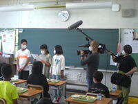 さらに、今回は給食の様子を福島テレビが取材にきて、6年3組の児童とタレントの安杜羽加さん(いぎなり東北産)が一緒に給食を準備して食べる様子や、インタビューに答える様子を撮影していきました。この様子は、9月30日(土)の「サタふく2択でQ」で放送されるとのことです。