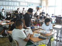 9名のボランティアの方にお出でいただき、読み聞かせをしていただきました。ボランティアの方が入らない学級には、担任やそれ以外の教員が入り、読み聞かせを行いました。それぞれの方が、子ども達に読んであげたい本を選んでくださいました。今日は十五夜なので、月にちなんだ本を選んでくださった方もいました。読み聞かせの後には、子ども達の反応など、感想を話してくれるボランティアの方々でした。