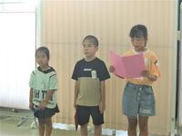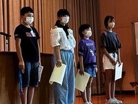 1学期頑張ったことの発表では、2年生の矢部明日香さん、4年生の野口悟志さん、6年生の遠藤愛椛さんが1学期を振り返って堂々と発表することができて立派でした。代表の皆さんの発表には、目標に向かって頑張り抜く姿や、友だちと協力し合って活動する姿など、善郷小学校が育てたい子どもの姿が表われていました。