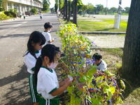 1年生が生活科の時間に、あさがおの種を取っていました。「こんなにとれました。」「茶色の種がありました。」と笑顔で嬉しそうに話しながら見せてくれました。夏休み中の大切に育てたから、たくさんの種をとることができるのですね。