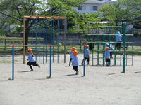今日の午前中に、かわいいお客様がたくさん善郷小学校へやって来ました。中央幼稚園の年長組のお友達が、歩いて善郷小学校までやって来て、校庭にある遊具で楽しそうに遊んでくれました。遊んでいる様子を見ていると、「おはようございます」と元気にあいさつをしてくれました。