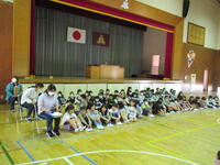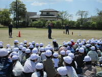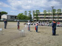 今日の3校時目に、今年度第1回の避難訓練を行いました。地震から火災につながった状況を設定しての訓練でした。子ども達は、事前に担任の先生から、避難経路や避難の仕方、避難するときの注意点「お・は・し・も・よ」=「おさない、はしらない、しゃべらない、もどらない、よくきく」を指導され、訓練を向かえました。訓練では、避難場所に一生懸命真剣に向かう姿がたくさん見られました。全体会では、話を聞く姿勢もきちんとしていました。矢吹消防署の松本さんからは、「避難の約束をきちんと守っている姿が見られました。全体で95点でした。残りの5点は、次の訓練に向けてしっかりとできるように心がけてください。」とお話しがありました。全体会の後、6年生が代表して、消火器の使い方を体験し、みんなで見学しました。小学校の避難訓練を初めて体験した1年生も、しっかりとした態度で参加することができました。