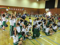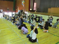 今日の2校時目に、「1年生を迎える会」を行いました。児童会の運営委員会の皆さんが中心となって準備を進め、当日の会の運営も行いました。昨年まで、感染拡大防止のために全校児童が集まることはできませんでしたが、今年は全校児童が体育館に集まって、1年生を迎えました。2年生から6年生は、ゲームやプレゼントで1年生が会を楽しめるように、おもてなしの心で会に参加しました。1年生は、感謝の気持ちとよろしくお願いしますの気持ちで会を終えることができました。1年生とお兄さんの姉さんの気持ちがつながった、とっても嬉しい迎える会になりました。