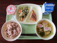 今日の給食は、卒業お祝い献立でした。「赤飯、赤魚の白醤油焼き、菜の花和え、すまし汁、牛乳」でした。お祝いの気持ち満載の献立で、とてもおいしくいただきました。令和4年度最後の給食でした。給食に携わる皆さん、ありがとうございました。22日(水)はお弁当の日です。保護者の皆様よろしくお願いします。