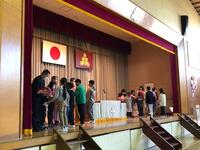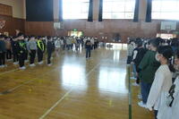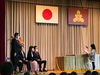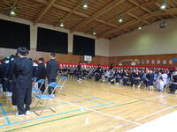 修了式を始めるために6年生が退場する前に、5年生の佐藤優斗さんが音頭をとり、在校生みんなが6年生に「ありがとうございました」と感謝の言葉を贈りました。6年生も「ありがとうございました」と感謝の言葉を返してくれました。全校児童が感謝の言葉を贈り合った素敵な時間でした。