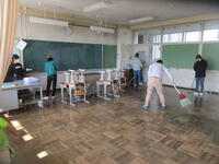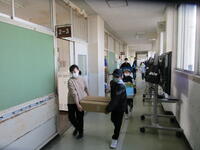 今日は、今年度のきょうしつの後片付けと新年度の教室に机などを移動する作業を、5年生の皆さんに手伝ってもらいました。決められた数の机を移動したり、備品を運んだり、ほうきで掃いたり、隅々まで水拭きをしたりとテキパキと作業をしてくれました。
