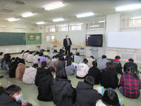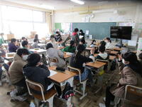 2月15日(水)に6学年の社会科で、矢吹町と太平洋戦争との関係を学ぶ授業を行いました。矢吹町第2区自治会総区長の大野康統様を講師に招き、「矢吹町と戦争の記憶」のテーマで、子ども達にお話をしていただきました。善郷小学校があるあたりに、戦時中は飛行機の訓練を行う飛行場や兵舎があったこと、戦後に兵舎がそのまま中学校の校舎として使われたこと、爆弾を落とされた後のクレーターが池となっていたことや大池公園の松の木にハート型の穴が空いており、それは松ヤニを燃料として使うために削られた跡だということなどを資料を準備して教えていただきました。教科書で勉強する戦争が、身近なところにもつながっていることを知り、子ども達は驚き、戦争という行為について深く考えていました。大野さん、貴重なお話をありがとうございました。