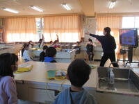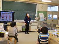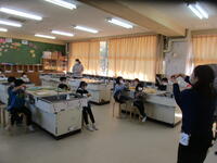 本日、(株)明治様から講師の方をお迎えして、1年生の手洗い・うがい教室を行いました。手を洗うのは、「ただいまのあと」と「いただきますの前」にすることが大切だということや、正しい手の洗い方を丁寧に教えていただきました。また、うがいはまず口の中でクチュクチュうがいをして、次にガラガラうがい、最後に仕上げのガラガラうがいをすると、3回のうがいの仕方を教えていただきました。うがいはまねをしただけでしたが、手洗いは教えてもらったとおり実際にやってみました。