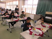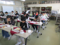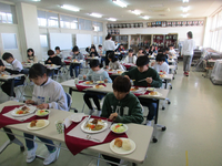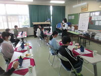 今日は、6年2組のお友達がテーブルマナー教室を行いました。メニューは6年1組の時と同じで「コーンポタージュ、クロワッサン&テーブルロール、生野菜サラダ、ハンバーグステーキデミグラスソースがけ~コーンバター、温野菜、ポテト添え~、いちごショートケーキ、紅茶」です。日頃の給食では、なかなか出てこないメニューです。マナーを学び、行儀良く食事をする子ども達に感心しました。食事が終わって「レストランゆりの木」を出て行く子ども達には、「おいしかった」と満足そうな楽しい笑顔が見られました。