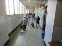 感染症の拡大が落ち着いてきたので、2学期になって始めての縦割り班での清掃活動が行われました。久しぶりで、掃除場所などを忘れてしまうなど戸惑いはあったものの、6年生を中心にしっかりと清掃に取り組んでいました。高学年のお友達が、低学年のお友達に掃除の仕方を教えたり、大変なところを手伝ったりする姿もたくさん見られました。