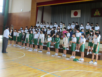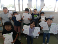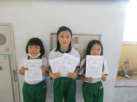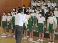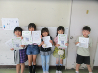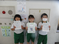読書感想文コンクールと理科作品展の表彰を代表児童に行いました。どちらも、夏休み中に課題として取り組んだもので、学校代表として出品されたものでした。